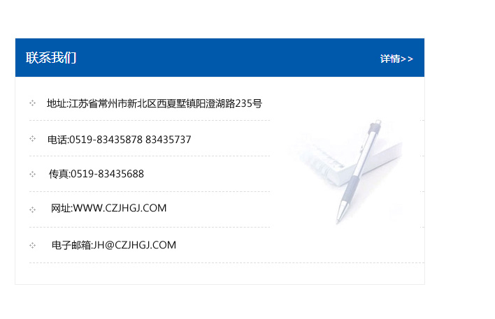 傳真:0519-83435688    郵編:213135    網址:WWW.czjhgj_com.fengzesiwang.com    電子郵箱:JH@czjhgj_com.fengzesiwang.com